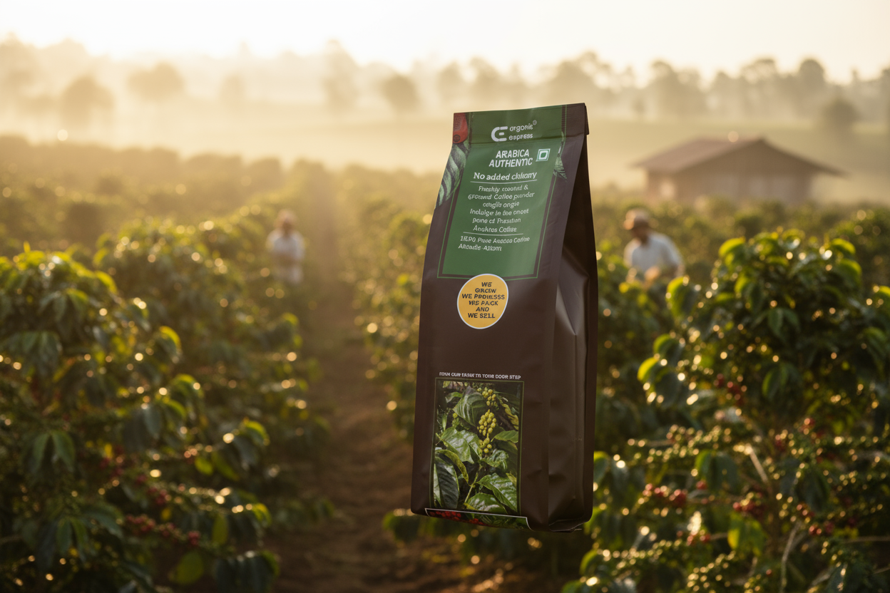"🌄 Hand-picked Arabica coffee from India's Western Ghats! We harvest ripe beans, pulp them, ferment, wash, and sun-dry for perfection. Then, hull, sort, and roast to unlock floral, fruity flavors. Savor a smooth, low-acidity brew that's 100% authentic! ☕ #ArabicaCoffee #WesternGhatsMagic"