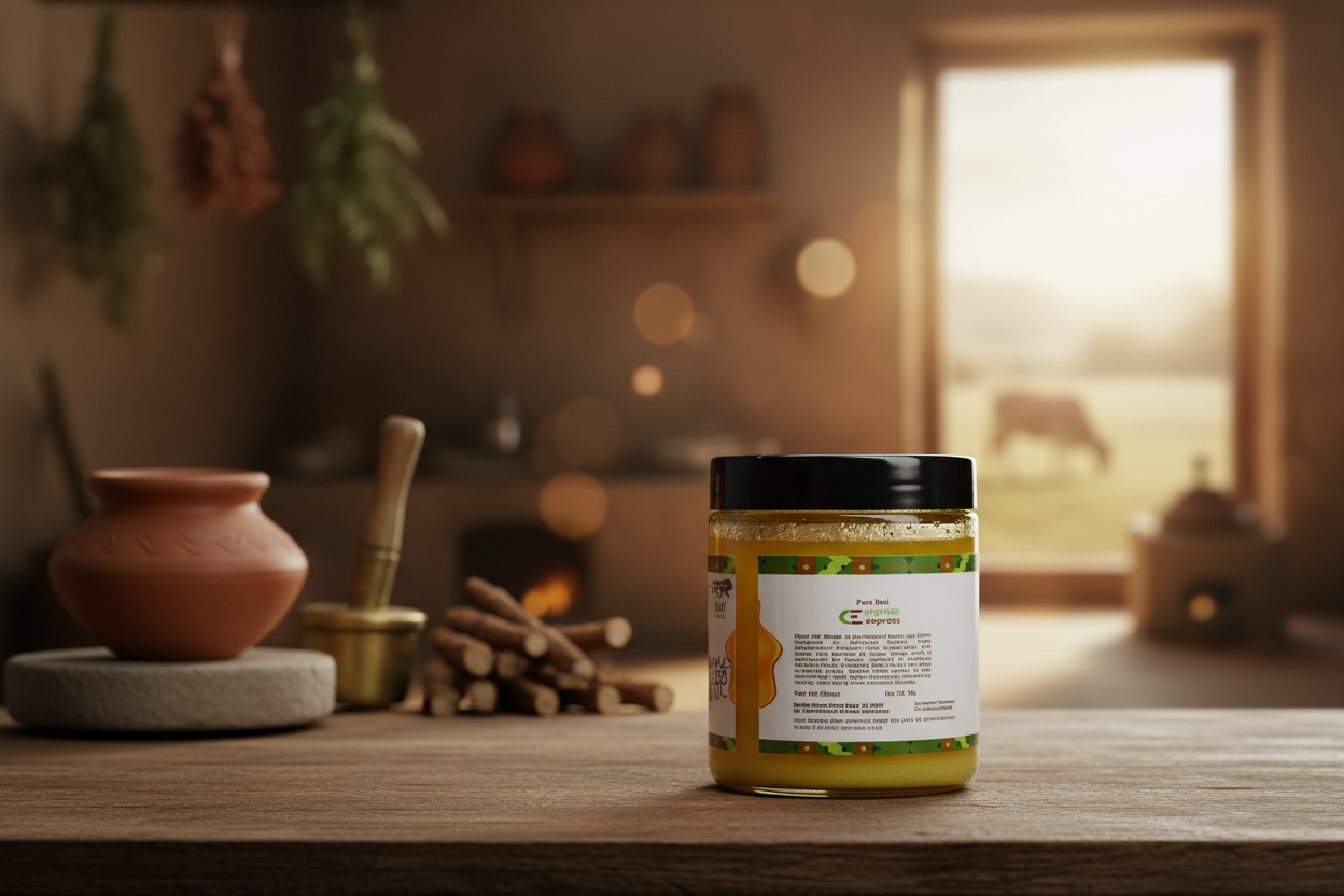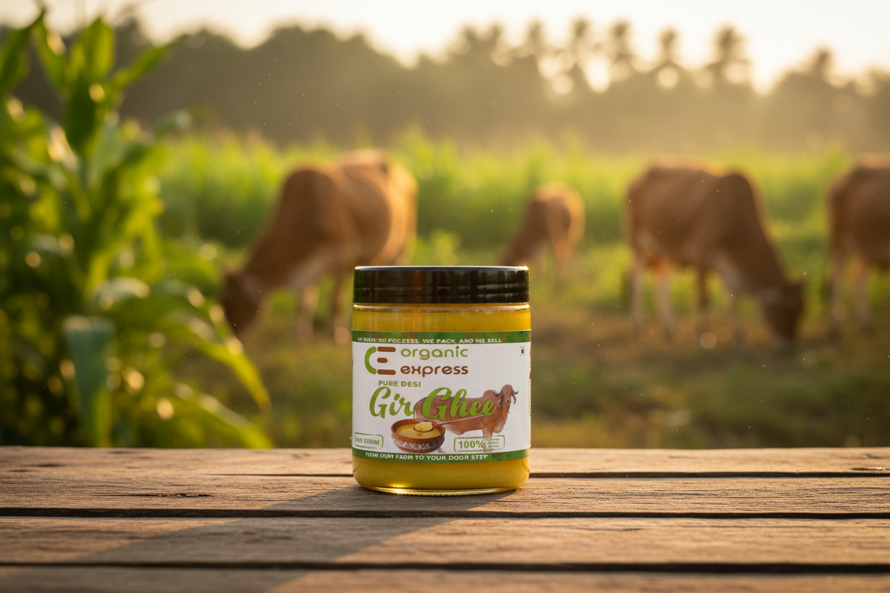 Made from the milk of indigenous Gir cows using the traditional Bilona method, this ghee is a true superfood. Rich in essential vitamins (A, D, E, K), Omega fatty acids, and Butyric Acid, it’s a powerhouse for your health.